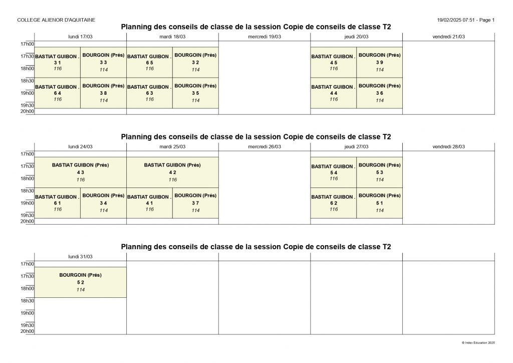 Veuillez trouver ci-dessous le planning des conseils de classe du 2nde trimestre.