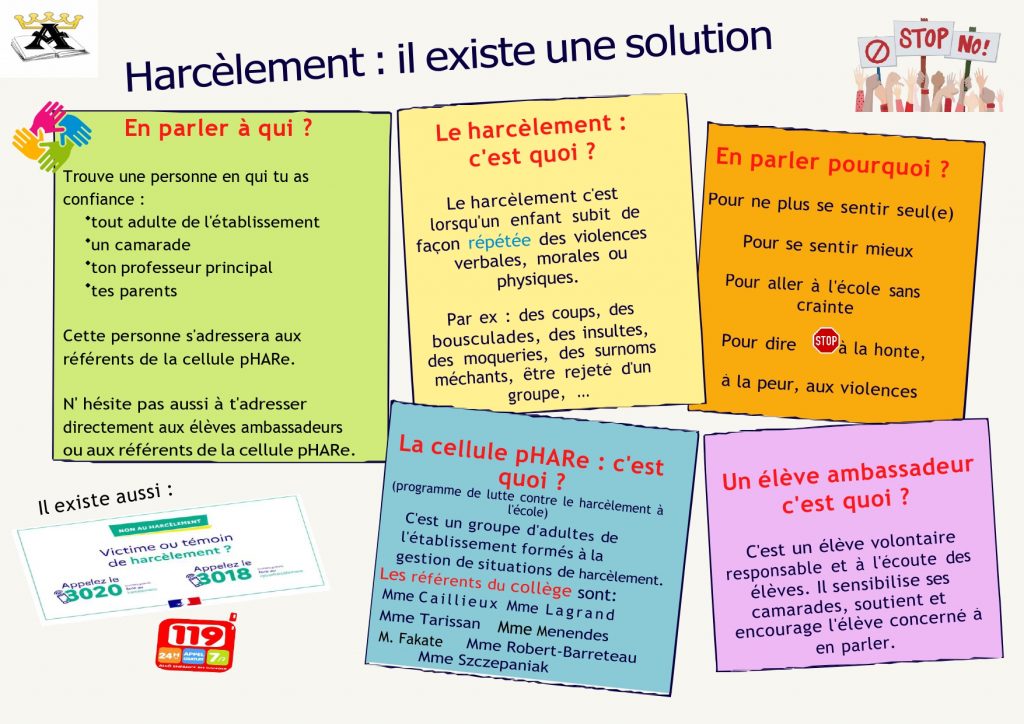 Le harcèlement c’est quoi ? En parler à qui ? En parler pourquoi ? La cellule pHARe c’est quoi ?