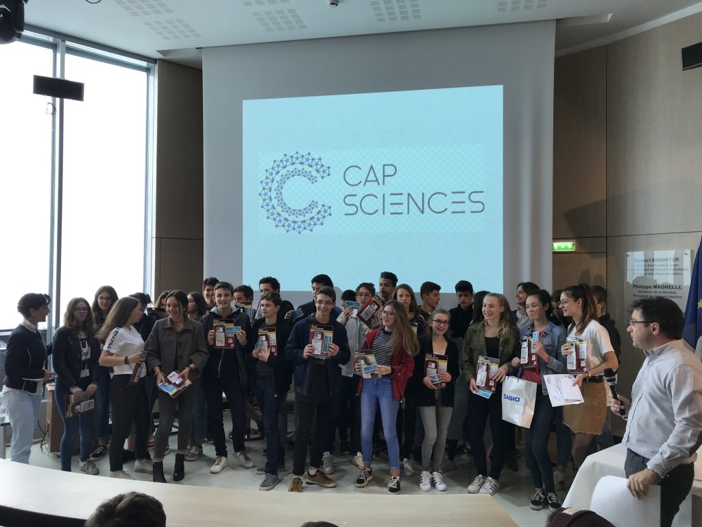 Nos élèves de 3°3 (qui sont arrivés second) ont chacun reçu une calculatrice TI-83 de la part des organisateurs, une place de cinéma offert par la mairie de Salles et une place de cinéma offert par le conseil départemental.